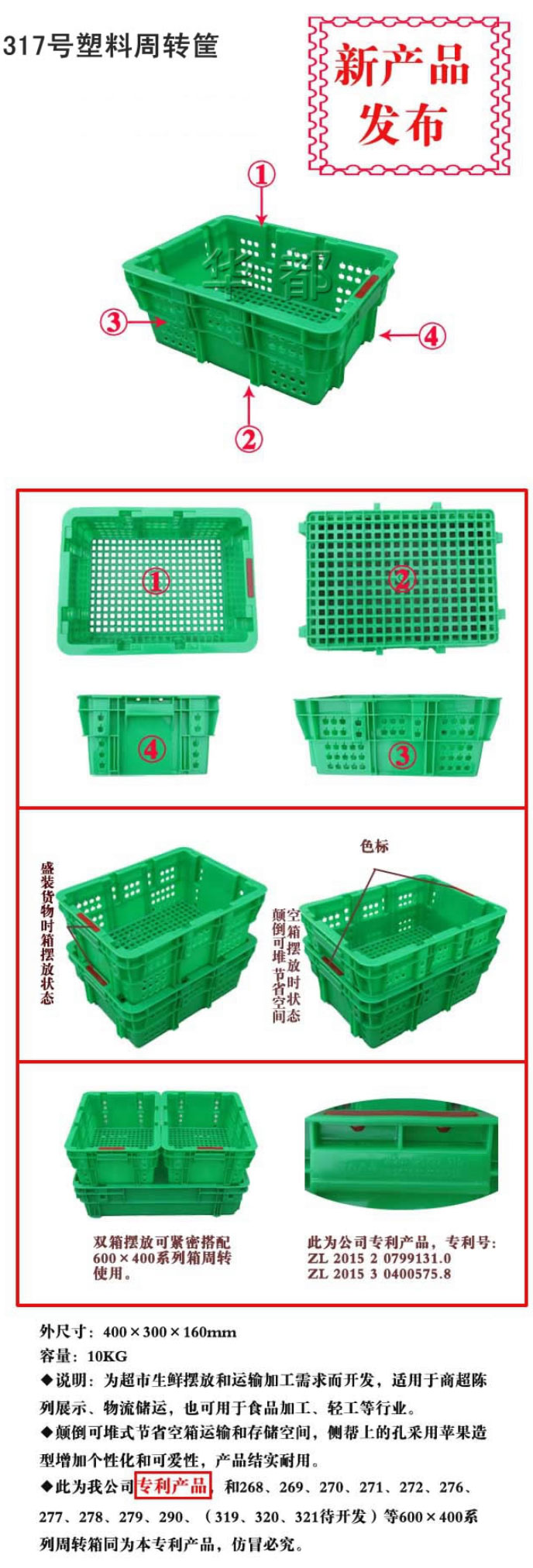 为超市生鲜摆放和运输加工需求而开发,适用于商超陈列展示、物流储运,也可用于食品加工、轻工等行业