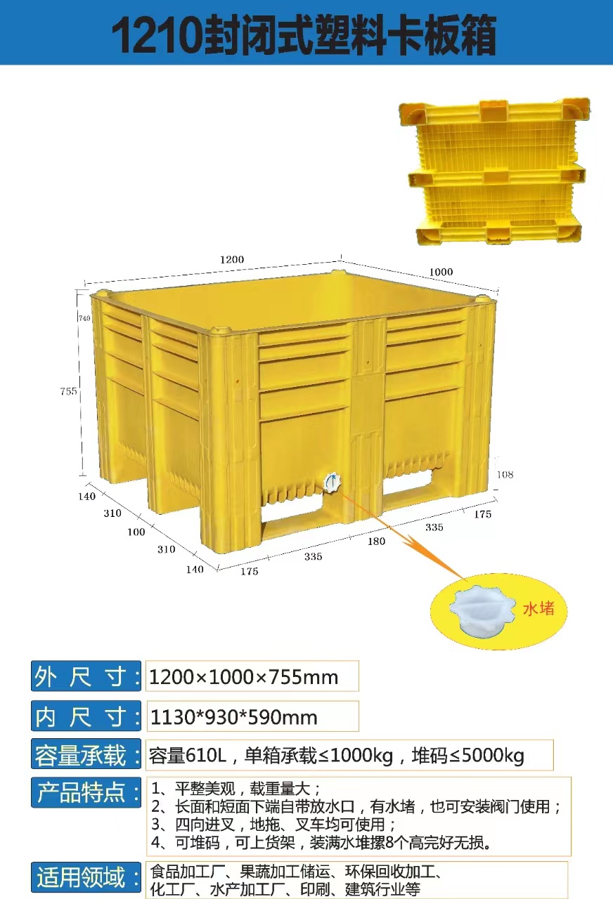 容量610L,单箱承载≤1000kg ,堆码≤5000kg